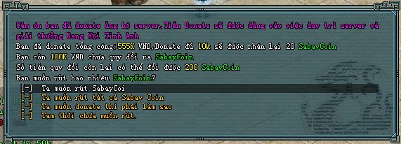 Bước 4: Rút SabayCoin tuỳ theo nhu cầu của bạn. và trải nghiệm game